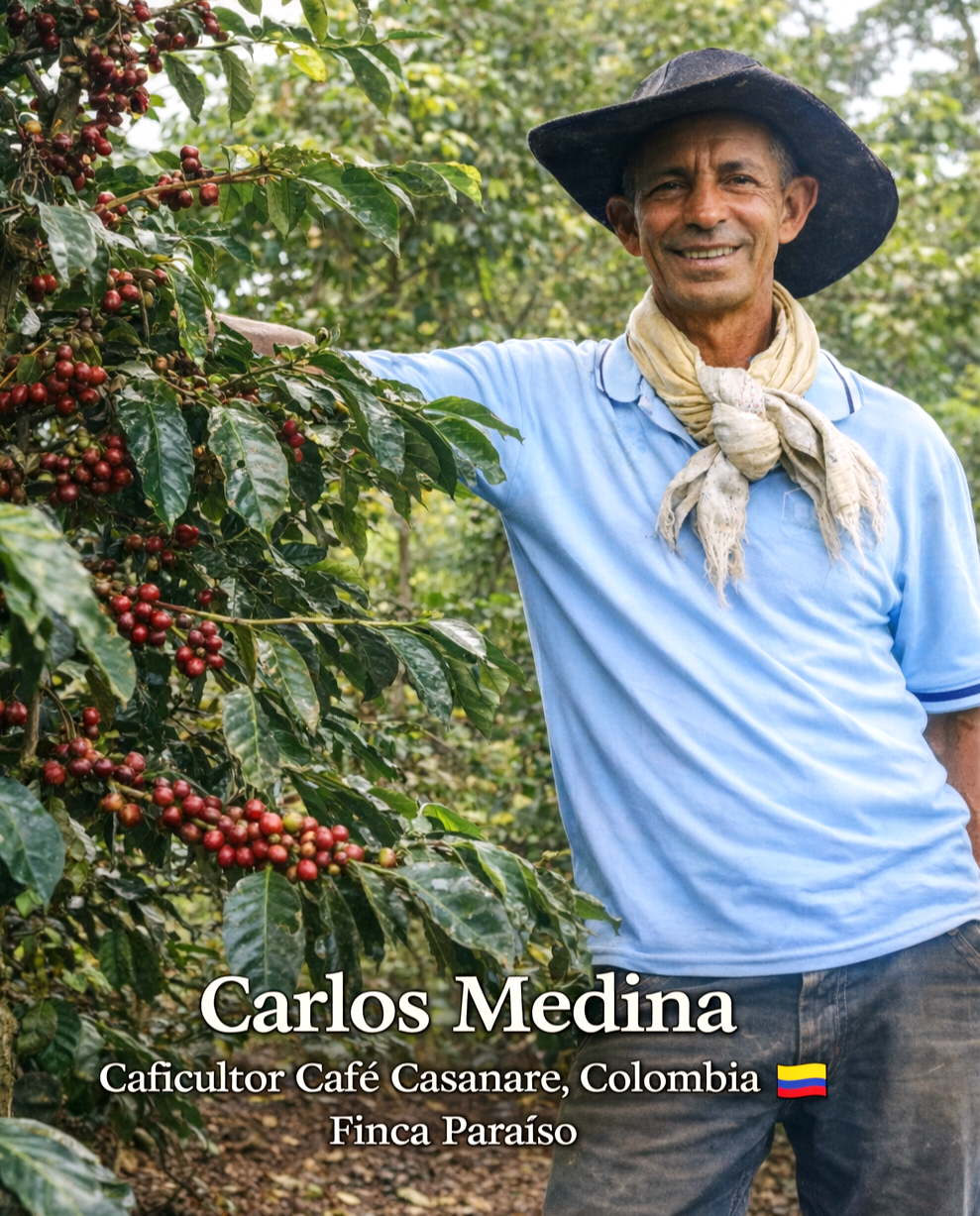 En las tierras cálidas de Casanare, Carlos Medina cultiva café en la finca Paraíso, en una región menos tradicional pero con un carácter único que se refleja en cada taza.